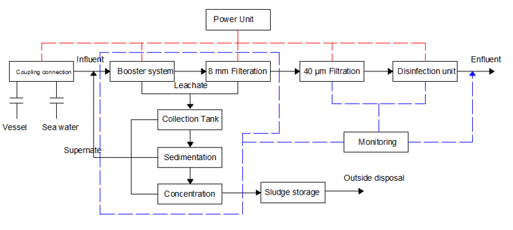 (1) According to guidelines for ballast water reception facilities G5 (IMO ballast water convention), ballast water discharged from a ship should be accepted by the ballast water reception facility including its suspended matter;